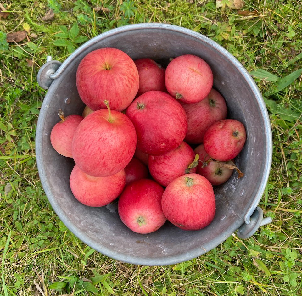 Nach den Pflaumen, sind nun die Äpfel und Birnen reif. Und nicht nur ein paar, sondern viele! Das bedeutet: einsammeln, pflücken, backen, pflücken, kochen, pflücken, pflücken, pflücken ….