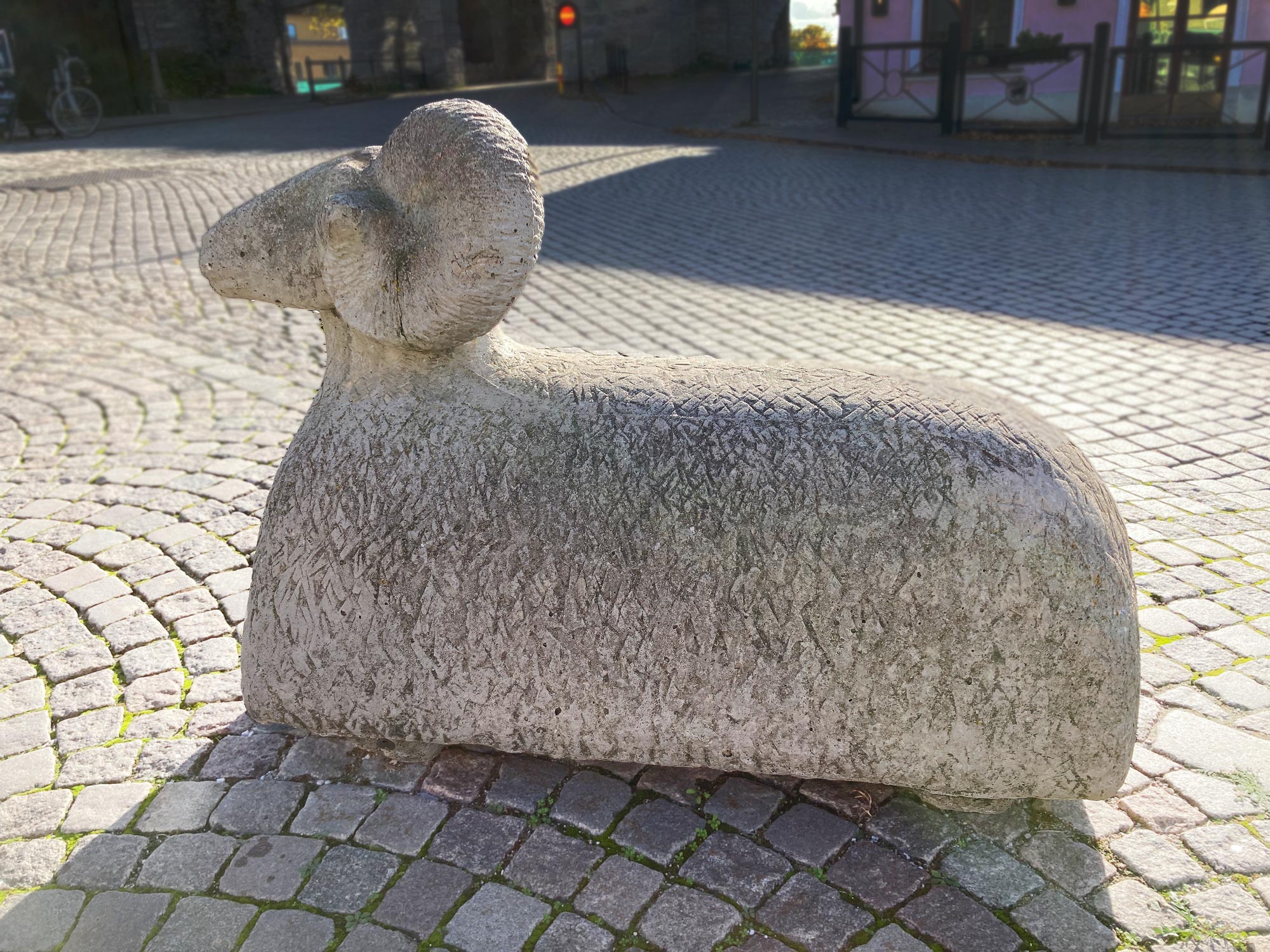 Wenn es irgendetwas reichlich auf der Ostseeinsel Gotland gibt, dann sind es Kalkstein und Schafe. Das dachte sich der gotländische Künstler Anders Årfelt wohl auch, als er 1993 den Gutefårsbaggen, kurz Baggen, für die Stadtverwaltung Gotland entwarf.