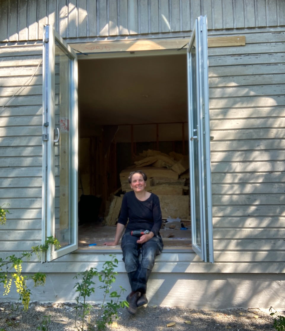 Auch beim Renovieren ging es natürlich weiter. Im Atelierhaus wurde eine Terrassentür mit zwei Flügeln eingebaut. Sie soll sich ab dem nächsten Jahr für Besucher:innen öffnen, wenn es endlich mit meinem eigenen Atelier wieder losgeht. Außerdem musste sie jetzt schon eingebaut werden, damit mein großer Drucktisch überhaupt ins Haus gebracht werden kann. Ihn hole ich Anfang Juli aus meinem Atelier in Hamburg hieher. Das wird auch noch eine spannende Aktion.