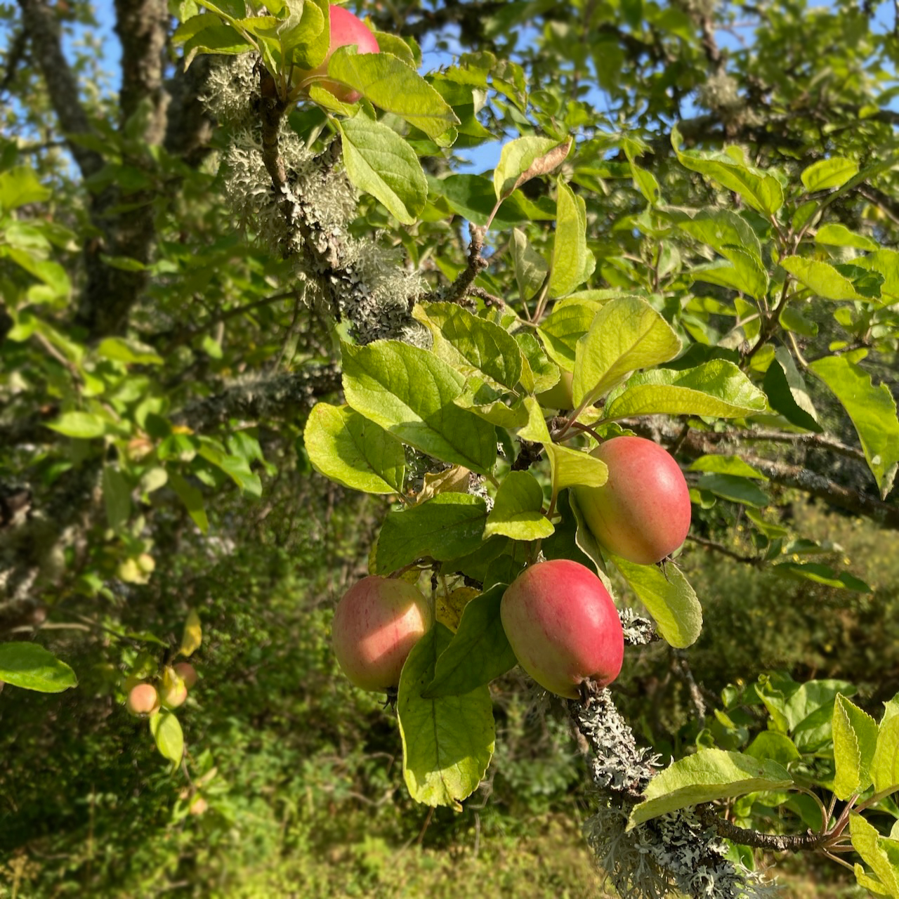 Die Äpfel und Birnen sind reif. In unserem Garten stehen neben einem kleinen Pflaumenbaum auch drei alte Apfelbäume und drei Birnenbäume. Sie sind vermutlich so alt wie das Haus, zumindest die Birnbäume, so groß und hoch wie sie sind, deuten darauf hin. Die Äste der Bäume sind überwachsen von graugrünen Flechten und zahlreiche sind trocken und morsch. Ein Handgriff reicht, um sie abzubrechen. Von kundigen Gartennachbarn wurden die Bäume im Frühjahr als vermutlich eher tot denn lebendig abgetan. Es sei unwahrscheinlich, dass die sie noch mal richtig tragen, so ihr Urteil. Doch offenbar haben die Bäume das nicht auf sich sitzen lassen. Jetzt, im Spätsommer, tragen sie eine wirklich reiche Ernte.