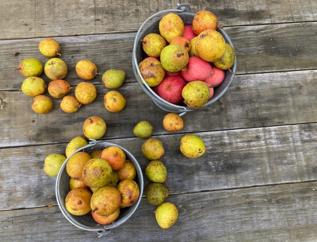 Bei der Menge an Äpfeln und Birnen könnte ich noch wochenlang so weiterkochen und -backen. Der Gefrierschrank und ja, auch meine Lust, setzen dem jedoch Grenzen.