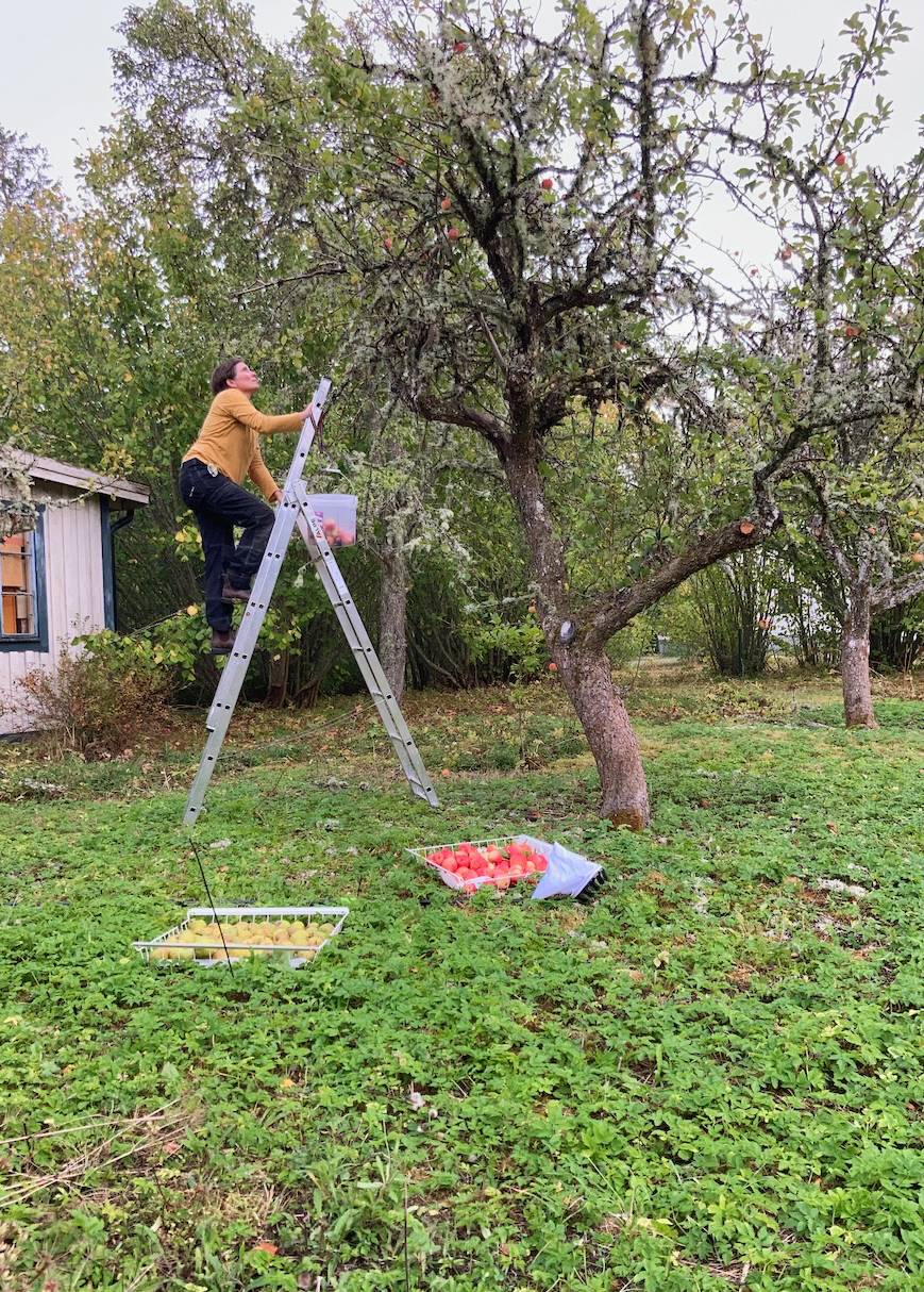 An dem Fallobst schlagen sich seit Tagen Amseln die Bäuche voll. Ganze Amselfamilien scheinen sich jeden Morgen hier und unter den Bäumen zum Brunchen zu verabreden. Ich lasse sie, sammle auf, was unversehrt bleibt und sich für Kuchen und Marmelade eignet.