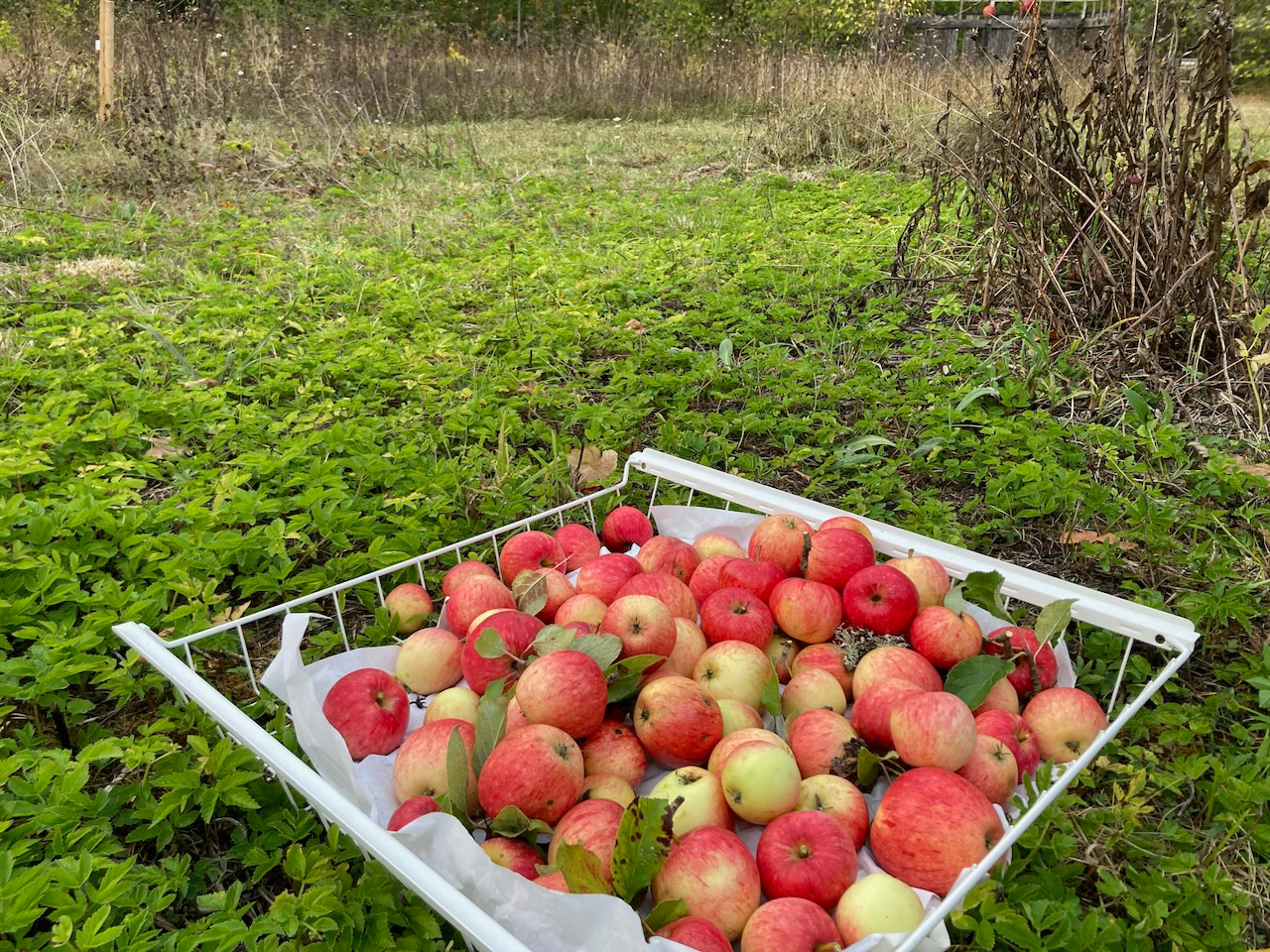 So landen die meisten der Äpfel schließlich in Kisten, wo sie dann einige Tage ausharren müssen, ehe ich sie Anfang Oktober zur Mosterei schleppe, wo sie zu köstlichem Saft verarbeitet werden. Das kommen sie dann alle in die Presse. Und richtig guten Apfel- und Birnensaft, den kann man nie genug haben. Vor allem, wenn er aus dem eigenen Garten stammt.
