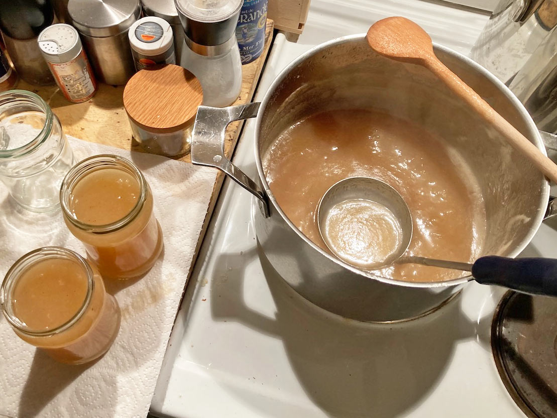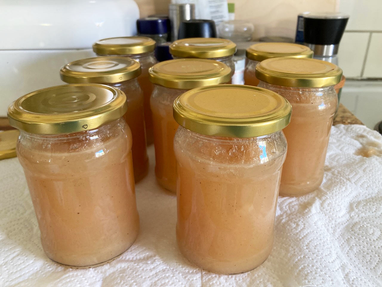 Da der Termin bei der Mosterei erst Anfang Oktober ist, die Äpfel und Birnen aber längst schon reif und zuhauf auf dem Boden lagen, habe ich in kürzester Zeit so viele Kuchen und Apfelbrote gebacken, Marmelade und Brotaufstriche eingekocht, wie noch nie. Gefühlt jeder Abend bestand aus Äpfel schälen, Birnen schälen, schnippeln und backen. Das war ja ganz lustig, aber nächstes Jahr buche ich einen Mosterei-Termin unbedingt schon im September. Trotzdem bin ich dankbar für das viele Obst, dass wir in unserem ersten Jahr hier auf der Insel einfach so von unserem Garten geschenkt bekommen haben.